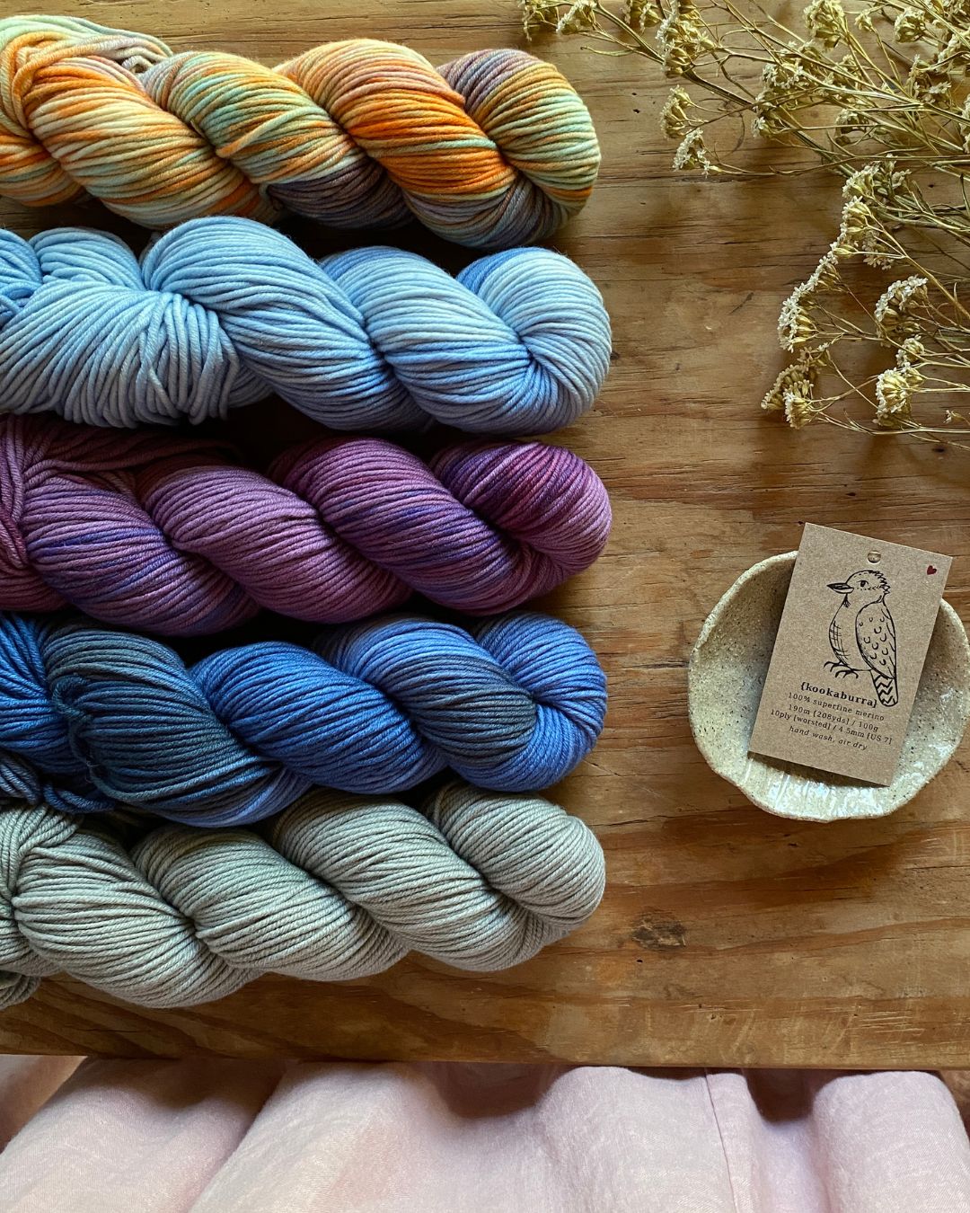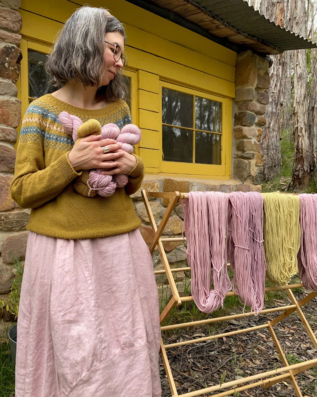 I’m Rebecca, an Adelaide Hills-based yarn dyer who creates comforting, meaningful yarns to help you feel warm inside and out. I thoughtfully dye my yarns from my bush studio, where I am surrounded by gum trees, wildflowers and local Australian wildlife. My yarn offerings are next-to-the-skin soft in gentle colourways that invite you to embrace a slower pace.